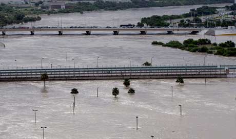 El gobernador Eugenio Hernández reprochó al presidente Felipe Calderón que la Comisión Nacional del Agua no le informara que las presas de la entidad estaban a tope. El director de ese organismo, José Luis Luege, arguyó que había dificultades políticas en la toma de decisiones por intereses de agricultores de la región. Autoridades de México y Estados Unidos anunciaron el cierre del puente fronterizo Juárez-Lincoln (en la imagen), entre los dos Laredos, por el aumento en el caudal del río Bravo, que alcanzó 11.5 metros de altura. En Nuevo León, al tiempo que Gobernación emitió la declaratoria de emergencia en 12 municipios más, la Secretaría de Educación estatal informó que mil 77 escuelas están dañadas Foto Ap