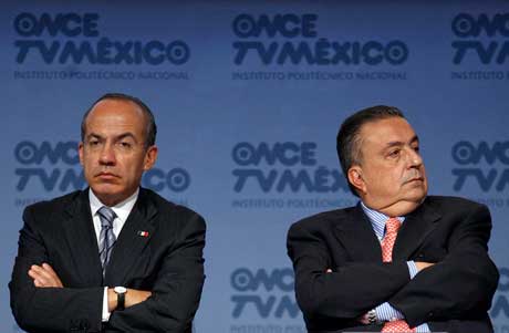 El presidente Felipe Calderón, acompañado por el secretario de Gobernación, Fernando Gómez Mont, encabezó el acto en el cual se anunció la ampliación en la cobertura de la señal de Once Tv. El Ejecutivo dijo: Es el primer paso hacia una cadena de televisión pública que se pueda ver en todo el país. A partir de ayer, las transmisiones llegan en señal abierta a 42 por ciento del territorio nacional Foto Cristina Rodríguez