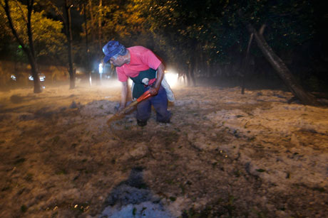 En la zona poniente del Distrito Federal, sobre todo en la delegación Miguel Hidalgo, el granizo alcanzó varios centímetros de altura. En Álvaro Obregón, Benito Juárez, Coyoacán, Cuauhtémoc, Iztapalapa, Magdalena Contreras, Tlalpan y Venustiano Carranza también llovió con intensidad y se generaron encharcamientos y caos vial. En la colonia San Rafael un árbol cayó sobre un vehículo estacionado Foto Carlos Cisneros