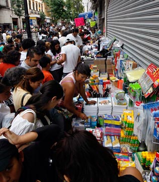 Miles de personas acudieron ayer a los puntos de venta de útiles escolares en busca del mejor precio. Arterias del Centro Histórico, como la calle de Mesones (en la imagen), se vieron pletóricas de padres de familia con lista en mano Foto Francisco Olvera