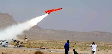 El gobierno de Teherán divulgó esta imagen para presentar su primer avión bombardero no tripulado, llamado Karrar (atacante, en persa), con alcance de mil kilómetros y velocidad de 900 kilómetros por hora. El artefacto puede transportar cuatro misiles invisibles para los radares y dos bombas de más de 110 kilogramos. El presidente Mahmud Ahmadinejad afirmó que la nave puede ser un mensajero de la muerte para los enemigos, pero antes que nada un mensajero de la salvación, la paz y la amistad para evitar conflictos y agresiones Foto Ap