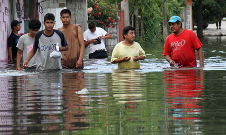 Cientos de personas fueron desalojadas en Jáltipan, Cosoleacaque y Texistepec, así como en las zonas bajas del municipio de Minatitlán, por las inundaciones que provocó el huracán. Las autoridades estatales informaron del desbordamiento de los ríos Papaloapan (en la imagen), Coatzacoalcos, Tesechoacán, Obispo y San Juan. En Oaxaca se reportaron otras dos muertes –suman cinco– por el temporal, que ha dejado más de 60 mil damnificados en 75 municipios. Al cierre de esta edición, el meteoro estaba a 535 kilómetros de Baja California Sur Foto Notimex