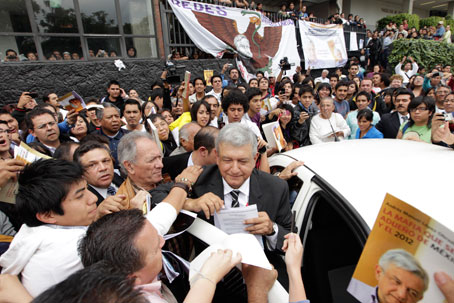 Decenas de estudiantes, trabajadores y maestros se congregaron en la Facultad de Economía para la presentación del libro del tabasqueño: La mafia que se adueñó de México... y el 2012 , en el auditorio Narciso Bassols. Apoyó las aseveraciones del rector José Narro sobre el abandono oficial a los jóvenes.