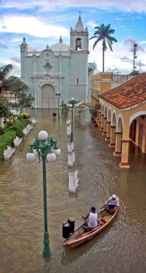 La ciudad veracruzana de Tlacotalpan, considerada patrimonio cultural de la humanidad, lleva casi una semana inundada debido a las constantes lluvias y al desbordamiento del río Papaloapan Foto Cuartoscuro