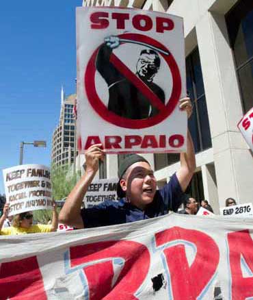 no me voy a dejar intimidar, aunque me lleven ante tribunales. Ayer, en Phoenix, hubo protestas contra sus acciones Foto Ap