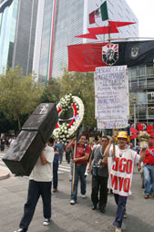 Frente a la sede de la Secretaría del Trabajo, el SME demandó deslindar responsabilidades por las dos muertes que causó la explosión ocurrida el jueves en una subestación de la CFE Foto Guillermo Sologuren