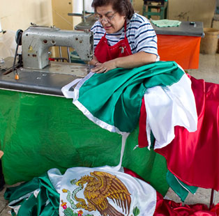 La cuarta parte de los mexicanos no hará cena para conmemorar el bicentenario del inicio de la guerra por la Independencia ni acudirá a alguna plaza para dar el Grito, informó la Profeco. El día 16 desfilarán más de 18 mil soldados y, por primera ocasión, policías federales. En la imagen, integrante de la familia Sepúlveda, que en su taller confecciona banderas nacionales desde 1942 Foto José Carlo González