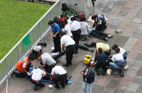 La Secretaría de Protección Civil informó que, como parte del Plan Permanente ante Contingencias en la ciudad de México, los cuerpos de emergencia y rescate realizarán este lunes simulacros en dependencias del gobierno capitalino. Las acciones darán inicio a las 11 de la mañana en 10 mil inmuebles y se prevé la participación de seis millones de personas. Ayer, en la Plaza de las Tres Culturas, en Tlatelolco, en la rememoración del terremoto del 19 de septiembre de 1985, también se realizaron ejercicios de auxilio a la población Foto María Meléndrez Parada