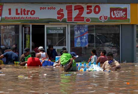 En varios puntos de la ciudad veracruzana afectados por las inundaciones que causó el huracán Karl ocurrieron ayer saqueos en viviendas y comercios. En supermercados, los damnificados se llevaron víveres por la falta de agua potable y comida. Las autoridades señalaron que hay alrededor de 100 colonias anegadas en la zona conurbada Veracruz-Boca del Río, donde 30 por ciento de la población sigue sin energía eléctrica Foto Alfredo Domínguez