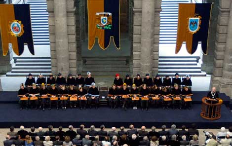 El rector José Narro Robles encabezó la ceremonia en el Palacio de Minería. Los galardonados son: Vitelmo Bertero, Noam Chomsky, Mirna Cunningham, Nawal El Saadawi, Margit Frenk Freund, David Ibarra, Ángel Gabilondo Pujol, Linda Manzanilla, Fernando Ortiz Monasterio, José Emilio Pacheco, Mario Vargas Llosa, Luis Felipe Rodríguez, Federico Silva y Ramón Xirau; Simon Veil no pudo acudir. La lista la completa el fallecido Carlos Monsiváis Foto Marco Peláez