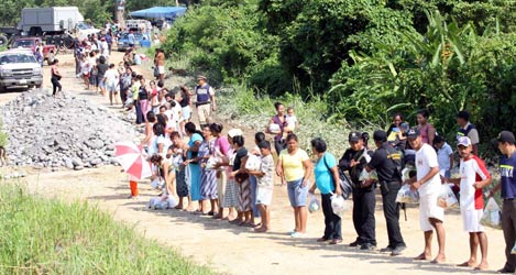 De gira por Chiapas, el presidente Felipe Calderón pidió a toda la población de Reforma y Planada que se reubique en alguna otra zona. El gobernador o yo les damos una casa, ofreció. De esos apoyos hemos escuchado antes, pero nada, le respondieron. Al final se decidió levantar un censo para tratar de situar el ejido en otro lugar. En tanto, Gobernación emitió una declaratoria de desastre natural para 15 municipios de esa entidad. En Tabasco se espera terminar de desalojar este fin de semana a 14 mil personas en riesgo. En Tlacotalpan, Veracruz, se teme que colapsen edificios históricos. En el municipio José Azueta, ubicado en este último estado, damnificados recibieron despensas (en la imagen) Foto Notimex