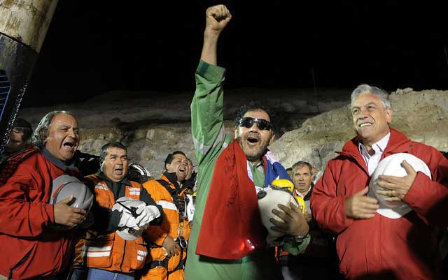 Luis Urzúa, de 54 años, topógrafo y jefe de turno, emergió a la superficie a las 21:54 horas en el reloj chileno. Fue el último en ser rescatado de la mina de San José tras el derrumbe del 5 de agosto, en el que quedó atrapado junto con 32 compañeros a 622 metros de profundidad. Urzúa se convirtió en el líder natural del grupo por sus 31 años de experiencia. En las primeras semanas de la tragedia organizó a sus hombres y logró que comieran sólo dos cucharadas de atún cada 48 horas, cuando aún no tenían contacto con la superficie. El presidente Sebastián Piñera le dio un fuerte abrazo y le dijo que fue un buen jefe. El trabajador manifestó al mandatario que ojalá no vuelva a ocurrir una situación similar Foto Ap