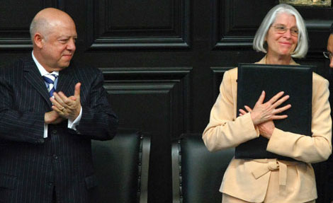 al monopolio de la fuerza de la violencia física, con el escudo cristalino de su autoridad moral. En la sesión en la casona de Xicoténcatl también se entregó el galardón al panista Luis H. Álvarez, quien decidió hacer extensivo el reconocimiento