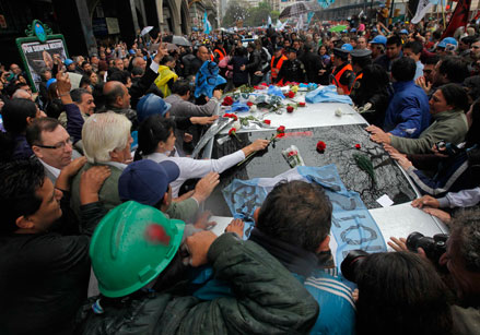 En Buenos Aires, obreros, amas de casa, políticos y representantes de todos los sectores de Argentina acompañaron los restos de Néstor Kirchner hasta el aeropuerto local, desde donde fueron trasladados a Santa Cruz –la provincia natal del ex presidente– para darles sepultura Foto Reuters