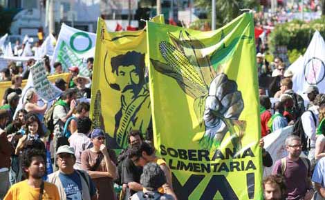 Cientos de integrantes de organizaciones ambientalistas de varios países marcharon en Cancún para exigir que en la cumbre para reducir la emisión de gases que generan el calentamiento del planeta, se tomen en cuenta los acuerdos de la primera Conferencia Mundial de los Pueblos sobre Cambio Climático y los Derechos de la Madre Tierra. Sostuvieron que las propuestas oficiales son una farsa, ya que, en los hechos, los acuerdos hasta ahora alcanzados son sólo una venta de la naturaleza y el desplazamiento de comunidades Foto Carlos Ramos Mamahua