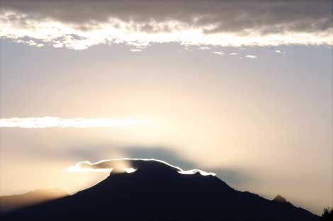 Ayer, al alba, luces y sombras dieron un marco esplendoroso al volcán Popocatépetl. La visión del coloso embelesó a madrugadores poco antes de las siete de la mañana. La imagen de Don Goyo fue captada en Iztapalapa Foto Cristina Rodríguez