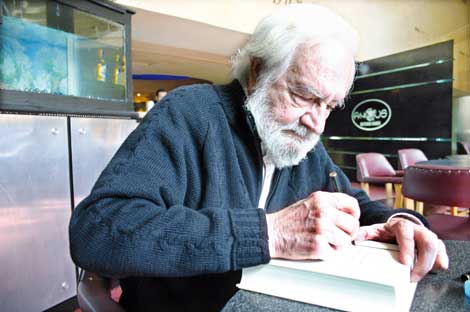 entrevista con La Jornada el poeta, dramaturgo, traductor y ensayista, mientras firma al lado de su esposa y cómplice, María Luisa Capella, su más reciente poemario: Estuario (Ediciones sin nombre, 2010).