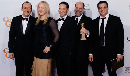 Los productores de la cinta, que trata sobre la creación de Facebook, posan con el galardón. La película también se impuso en las categorías de dirección –premio que se llevó David Fincher–, guión y banda sonora. Colin Firth es el mejor actor de drama por la película The King Speech, la cual aspiraba a siete distinciones. La historia de boxeo The Fighter obtuvo dos por el trabajo de Christian Bale y Melissa Leo como actores secundarios. Biutiful, del mexicano Alejandro González Iñárritu, fue derrotada por la danesa In a Better World Foto Reuters