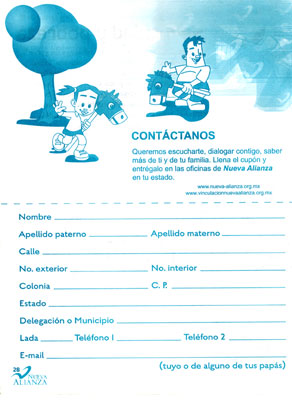 En los cuadernillos que elaboró el Partido Nueva Alianza (Panal) para estudiantes de enseñanza básica se incluye una hoja con una petición: