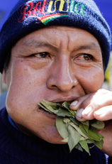 El acullo o pijcheo (el masticado de la hoja) se realizó en las principales ciudades del país andino, para impulsar la despenalización de esa tradición por parte de la Organización de Naciones Unidas Foto Reuters