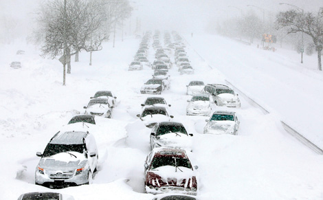 Alrededor de 30 estados fueron afectados por el temporal, el cual paraliza amplias zonas del centro-oeste y el noreste de ese país. Varias industrias, sobre todo automotrices, y medios de transporte suspendieron actividades. Se informó que más de 5 mil 600 vuelos fueron cancelados. En Chicago se registró una nevada histórica (en la imagen) de más de medio metro de altura. En la mexicana Ciudad Juárez el frente frío número 26 provocó que la temperatura descendiera a menos 13 grados centígrados. En Sonora, Nuevo León y Tamaulipas hay estado de alerta Foto Ap