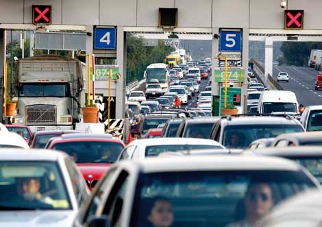 Miles de capitalinos saturaron ayer las cinco autopistas de ingreso a la ciudad de México al concluir el asueto del 5 de febrero. La imagen, en la caseta de cobro de la vía a Cuernavaca, la cual registró el mayor ingreso de vehículos por minuto Foto Carlos Ramos Mamahua