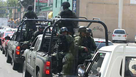Soldados circularon con fusiles de asalto por Insurgentes Norte. Los reporteros de la fuente capitalina los avistaron luego de cubrir la visita que realizó Marcelo Ebrard, jefe del Gobierno capitalino, a la lumbrera 13, en la avenida de los 100 Metros. En el estado fronterizo se reportó la muerte de 20 personas en enfrentamientos entre bandas en los municipios de Abasolo e Hidalgo; en la primera localidad perecieron 18 presuntos delincuentes durante una refriega. También se documentaron 28 decesos vinculados al crimen organizado en nueve entidades Foto María Meléndrez Parada