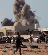 La aviación libia bombardeó ayer el puerto petrolero de Ras Lanuf, donde los insurgentes respondieron con fuego antiaéreo. La ofensiva provocó el éxodo en la ciudad Foto Ap