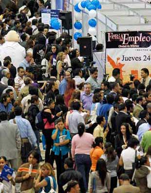 Cientos de personas acudieron a la 27 edición del encuentro en la Expo Bancomer. Marcelo Ebrard, jefe de Gobierno capitalino, dijo que sería un error aprobar la reforma laboral propuesta por el PRI, ya que va a provocar más cesantía. El Inegi informó que la desocupación, con cifras a febrero, afectó a 5.38 por ciento de la población económicamente activa. Ese comportamiento no cede desde hace 11 meses Foto Roberto García