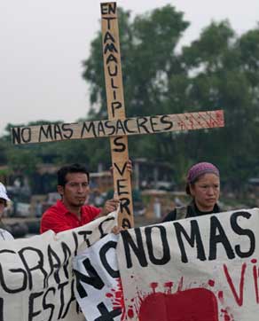Doce centroamericanos, acompañados por activistas mexicanos, partieron de la ciudad guatemalteca de Tecún Umán en una travesía de tres días por los puntos de mayor riesgo para indocumentados en Chiapas y Oaxaca. Rubén Figueroa, representante de la organización Paso a Paso hacia la Paz, dijo que el objetivo es repudiar la matanza de San Fernando, Tamaulipas; exigir que se castigue a los responsables, demandar que cese la represión contra migrantes en México y que se retiren las garitas del INM. La imagen, luego del cruce del río Suchiate, en Ciudad Hidalgo Foto Víctor Camacho
