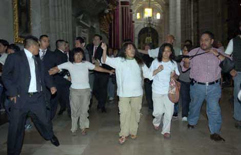 destruir la Iglesia católica para que nazca un nuevo Dios. Elementos de seguridad del templo intervinieron e incluso el presidente del Colegio de Abogados Católicos, Armando Martínez, golpeó a un manifestante. Martínez Gómez culpó de los hechos al dirigente del PRD, Jesús Zambrano, quien se deslindó Foto María Luisa Severiano