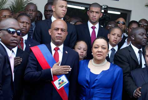 Michel Martelly fue investido ayer presidente, en una ceremonia realizada en un recinto provisional de madera en Puerto Príncipe. El recién electo mandatario señaló: