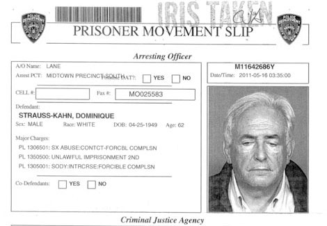El hasta ayer funcionario del organismo logró una nueva audiencia judicial para solicitar su libertad bajo fianza, mientras la camarera que lo acusa de agresión sexual testificó ante un gran jurado en Nueva York. En Francia, según sondeos, una mayoría de ciudadanos sospecha que Strauss-Kahn fue víctima de un complot para poner fin a sus aspiraciones presidenciales. La policía divulgó su ficha de detención Foto Reuters