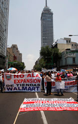Miles de locatarios de mercados públicos, así como comerciantes de tianguis y tiendas de barrio, marcharon hacia el Zócalo para exigir que se ponga freno a la expansión de centros de autoservicio y de conveniencia, que vulneran su economía Foto Francisco Olvera
