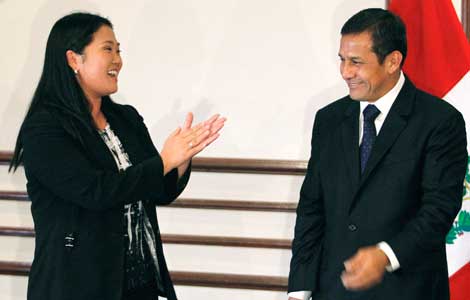 Keiko Fujimori, candidata del partido derechista Fuerza 2001, reconoció ayer en Lima su derrota en la segunda vuelta de las elecciones presidenciales frente a Ollanta Humala, el aspirante del Partido Nacionalista de Perú. El triunfo del teniente coronel retirado fue mal recibido en el mercado de valores local, donde el índice tuvo una caída de 12.5 por ciento y las operaciones fueron suspendidas. Las autoridades electorales informaron que la tendencia era irreversible, con 93.85 por ciento de las actas de votación contabilizadas Foto Reuters