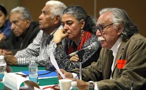 Compañeros de lucha del ex líder del Partido Comunista Mexicano recordaron ayer en la Cámara de Diputados –de la que formó parte en la 51 Legislatura– su trayectoria de hombre de izquierda. Lamentaron que el Gobierno del Distrito Federal no haya respondido a la petición ciudadana para que se ponga su nombre a las estaciones del Metro y Metrobús Buenavista. Carlos Payán, director fundador de La Jornada, recordó el carácter de luchador social excepcional del ex dirigente ferrocarrilero y de su cabal honradez, de la que hizo gala toda su vida. Lo acompañan Gerardo Unzueta, Marcos Leonel Posadas y Elvira Concheiro Foto Marco Peláez