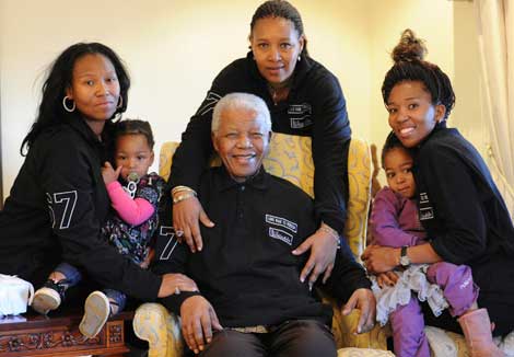 El festejo del ex presidente fue en familia, en Qunu, su ciudad natal. En las escuelas, más de 12 millones de alumnos cantaron: Feliz cumpleaños, querido Tata, te queremos. El mandatario sudafricano Jacob Zuma lo visitó y dijo que el ex dirigente del movimiento antiapartheid es inspiración para todo el mundo. Mandela, quien pasó 27 años en la cárcel, recibió el Premio Nobel de la Paz en 1993 Foto Ap