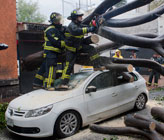 La intensa lluvia de ayer en la capital provocó encharcamientos y caída de árboles, como en la colonia San Miguel Chapultepec. En gran parte del país habrá más precipitaciones por el huracán Dora, que se degrada a tormenta tropical Foto Víctor Camacho