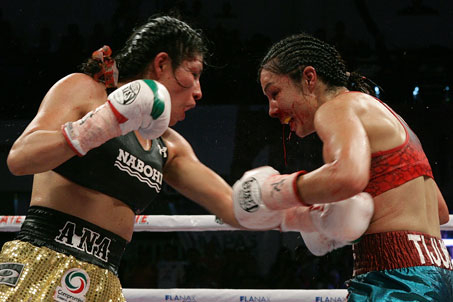 Ana María La Guerrera Torres se impuso por decisión unánime a Jackie La Princesa Azteca Nava, con lo cual conquistó el título Diamante de peso gallo del Consejo Mundial de Boxeo, en la pelea celebrada anoche en la arena Metropolitana de Tuxtla Gutiérrez Foto Noé García / Jam Media