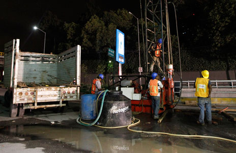 Las obras del segundo piso del Periférico –a cargo de la empresa española OHL– en el cruce con Paseo de las Palmas fueron suspendidas desde la madrugada del jueves luego que durante los trabajos de excavación se detectó una probable fuga de hidrocarburo Foto Yazmín Ortega