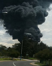 La columna de humo tras la explosión en la refinería de Tula se pudo observar a varios kilómetros de distancia Foto Aldo Falcón