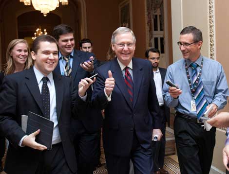 El senador republicano por Kentuky, Mitch McConnell, luego de la aprobación de las medidas para reducir el déficit en Estados Unidos, que ponen fin a una prolongada disputa política que tuvo en vilo a la economía mundial Foto Ap