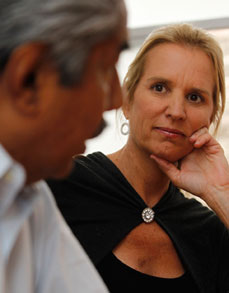 Kerry Kennedy, presidenta del Centro Robert F. Kennedy, escucha a Abel Barrera, director del Centro de Derechos Humanos de la Montaña Tlachinollan Foto Yazmín Ortega Cortés