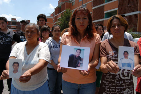 Martina Jaramillo Lemus, Laura Valdez Monroy y Florina Méndez Ricárdez demandan que sus hijos, detenidos por la Procuraduría de Justicia mexiquense sin orden de aprehensión en la unidad habitacional La Isla, en el municipio de Tultitlán, sean puestos en libertad Foto Mario Antonio Núñez