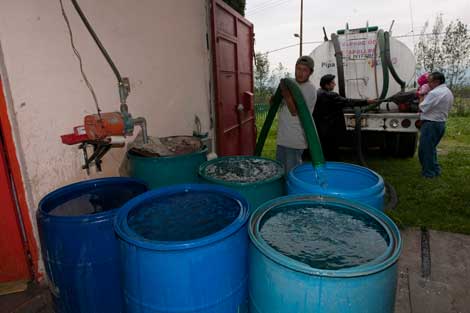 El Sistema de Aguas de la Ciudad de México informó que reforzará el programa emergente de abasto del líquido en 12 delegaciones hasta el sábado 17 de septiembre, debido a la ampliación de trabajos de la Conagua en el sistema Cutzamala; la baja en el suministro es de 40 por ciento. El gobierno capitalino dispuso de 440 pipas y da prioridad a escuelas y hospitales. La imagen, en Iztapalapa Foto Víctor Camacho