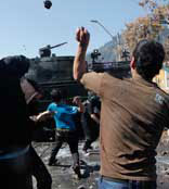La marcha de más de 10 mil personas en Santiago culminó con enfrentamientos entre un grupo de encapuchados y la policía, que utilizó carros lanzagua; se informó de 20 detenidos Foto Reuters