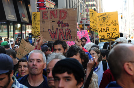 Integrantes de Ocupa Wall Street y activistas contra la guerra se manifestaron ayer en Manhattan Foto Xinhua