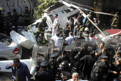 Un helicóptero en el que viajaban funcionarios del estado de México cayó en la colonia Barrio de Santa Catarina, en Coyoacán, lo que dejó un saldo de dos personas muertas y dos heridas, así como daños en vehículos y un inmueble Foto Notimex