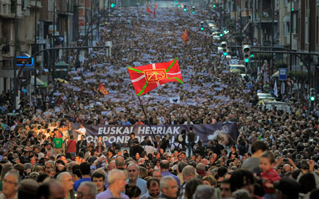 Miles de personas marcharon en Bilbao para exigir que los gobiernos de España y Francia den pasos concretos para avanzar en la solución definitiva del histórico conflicto vasco. Se demandó además el respeto a los derechos de los presos de ETA Foto Ap