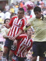 Las posibilidades de las Águilas para entrar a la liguilla se esfumaron ayer en el Azteca. Las anotaciones de las Chivas fueron de Antonio Gallardo, Marco Fabián y Erick Torres, en tanto Christian Benítez marcó por los de Coapa Foto Notimex